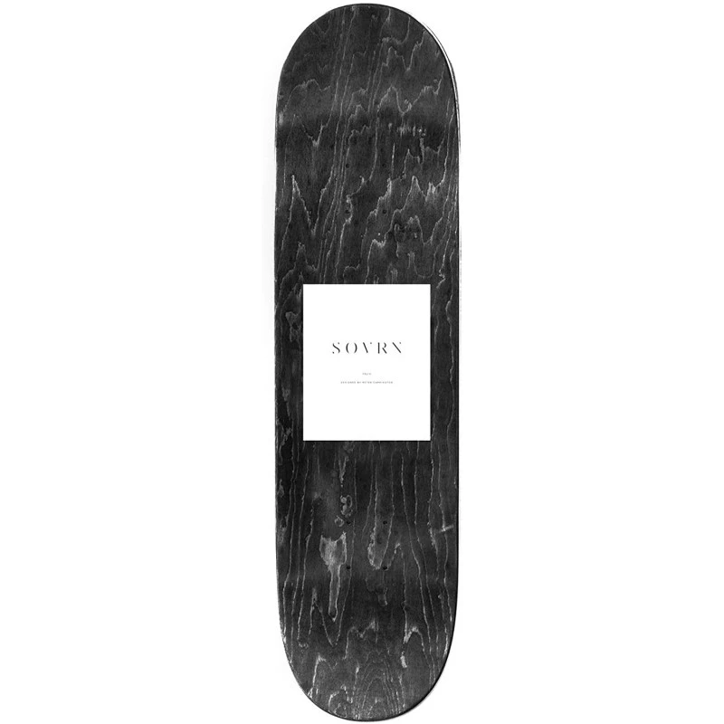 Planche de skate SOVRN Skateboard Felis en 8.5″, au design original avec un dessin de félin sur fond blanc.