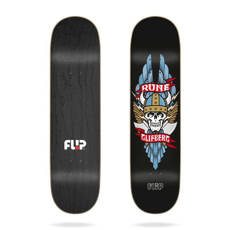 Planche de skateboard FLIP Glifberg Viking en 8.5″, pro model du rider Rune Glifberg au design sombre nous rappelant les origines Scandinavie du skateur.