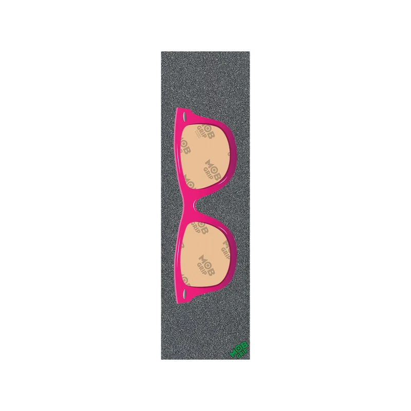 Grip pour plateau de skateboard MOB Sunnies Clear en 9 x 33 pouces, avec des lunettes roses et les verres des lunettes transparents !