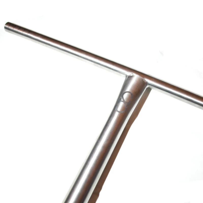 Guidon de trottinette freestyle SLICK HARDWARE Titanium T-Bar, une barre légère et résistante, munie de traits de coupe pour guider au niveau des poignées afin de pouvoir ajuster la barre à la largeur souhaitée.