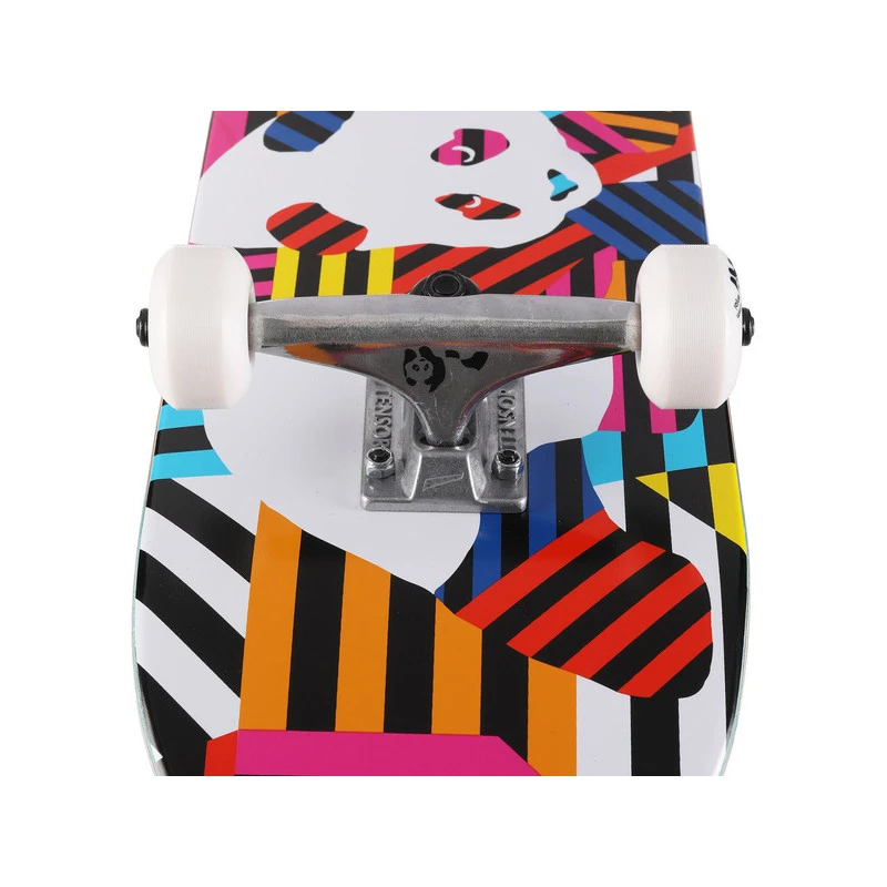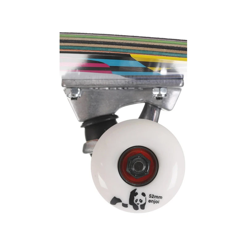 Skateboard complet ENJOI Panda Stripes Resin Soft en 7.75″, parfait pour les jeunes qui recherchent un skate de qualité pour progresser et apprendre des tricks.