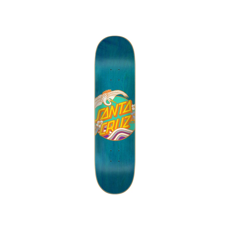 Planche de skateboard SANTA CRUZ Crane Dot en 8″, une planche au graphisme simple mais efficace avec le logo Santa Cruz revisité sur un fond bleu.