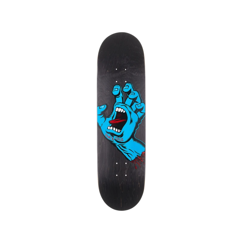 Planche de skateboard SANTA CRUZ Screaming Hand en 8.6″, une planche au design simple mais efficace avec la célèbre Screaming Hand sur un fond noir.