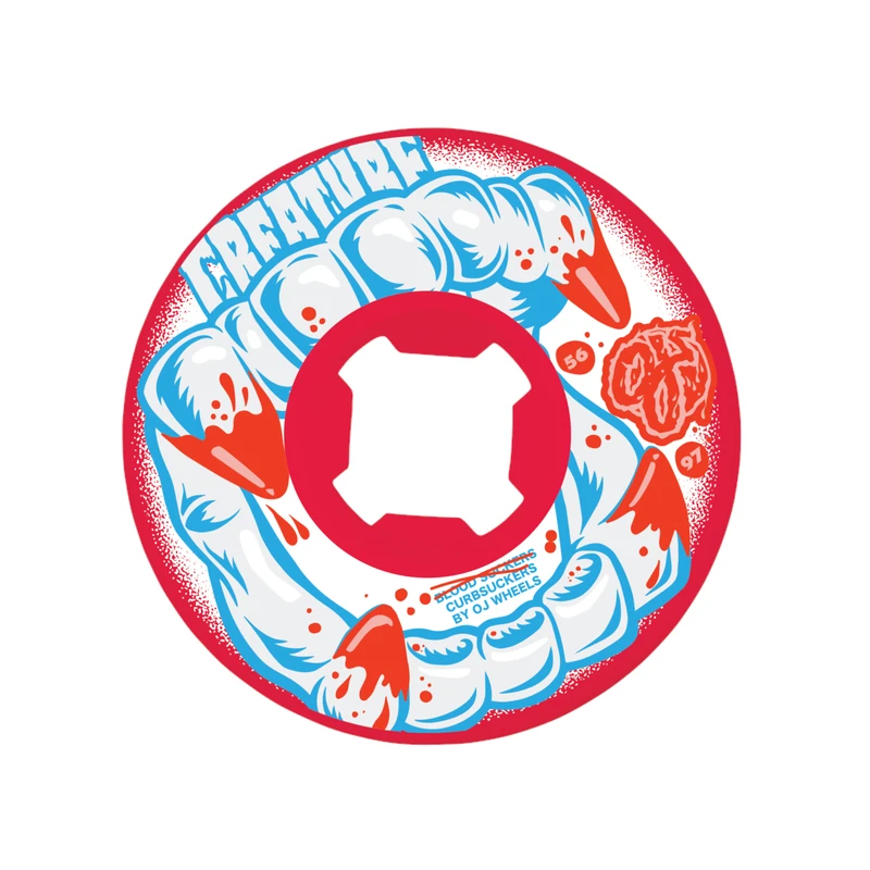 Roues de skateboard OJ WHEELS Curbsuckers Bloodsuckers en 56mm et 97A réalisées en collaboration avec la marque de skateboard CREATURE !