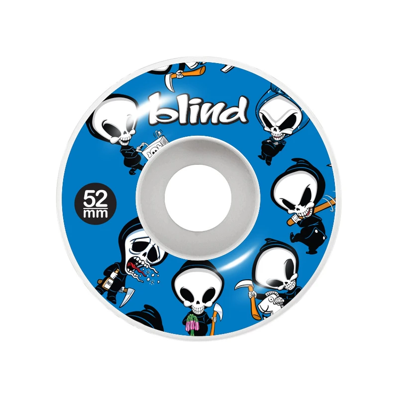 Roues de skateboard BLIND Reaper Wallaper Blue 52mm 99A, des roues de diamètre et de dureté classique idéales pour le street, le bowl ou le skatepark.