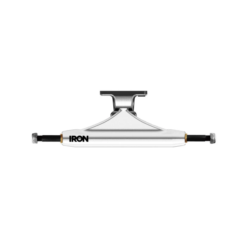 Truck de skateboard IRON White 139mm High, truck blanc avec le logo noir, idéal pour une planche entre 7.875″ et 8.125″.
