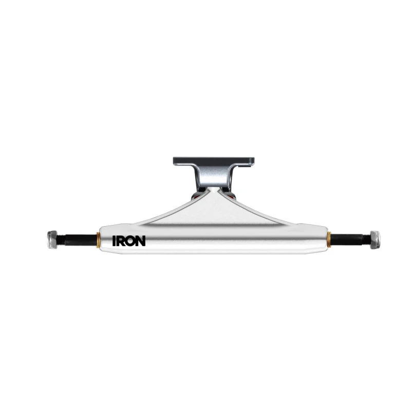 Truck de skateboard IRON White 149mm High, truck blanc avec le logo noir, idéal pour une planche entre 8.375″ et 8.625″.
